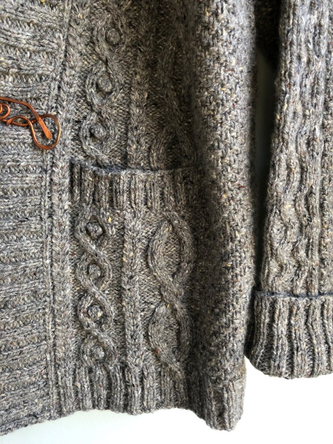 I started the year with only a few projects in my queue knowing my January – February (and now my March – May) focus would be Fiadh, an Aran sweater designed by Marie Greene. I made steady progress on the body, sometimes even falling into the zen-like rhythm of swirling Celtic cables and the occasional well-placed bobble but somehow got stymied and landed on “sleeve island”, a place where I am not usually marooned. But, with Cubs baseball airing on Marquee TV, I am once again progressing steadily — 24 rows last night as the Cubs swept the Mets.