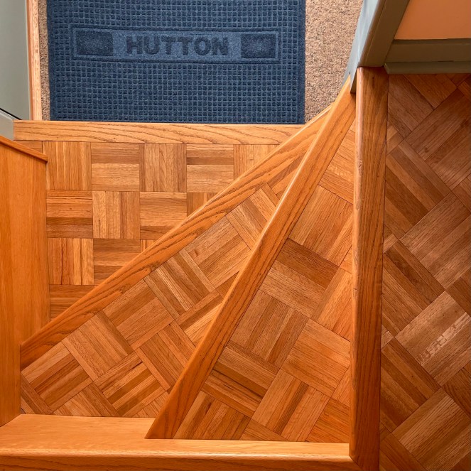 Through the efficiency of eSignatures, we signed with a realtor last week making it official that we are house hunting. This final GeometricJanuary post reveals just one of the barriers necessitating this life changing move from our multi-story, 100-year-old house to a step-free environment, boasting all the modern-day amenities on one floor. The turning parquet stairs with four angular steps to-and-from the back door is the shortest of the house’s staircases. While geometrically appealing, these steps are, at times, difficult to maneuver. In addition, there are other interior steps between some of the rooms and the exterior approach up the berm to the front door has two runs of steps. The quirks of our old house on a small lot with insufficient space to ramp would provide a significant challenge even for This Old House thus making our decision to move the reasonable choice.