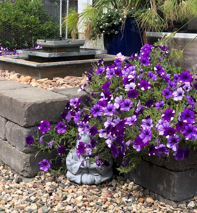 Admittedly, we had never discussed a division of labor however, in my mind, there was a clear delineation. Each summer, while I focused on our square-foot vegetables and 20+ potted plants (the number always varies) I let Richard maintain the rain garden. Come to find out (amazing what a conversation reveals!) that he was unaware of this breakdown in gardening duties. What I had assumed was his preference was actually a simple default location determined by cool morning shade. Recently, following Richard’s wise example, I have started my morning gardening tasks in the shade and the rain garden now presents a bit of order sans so many weeds.