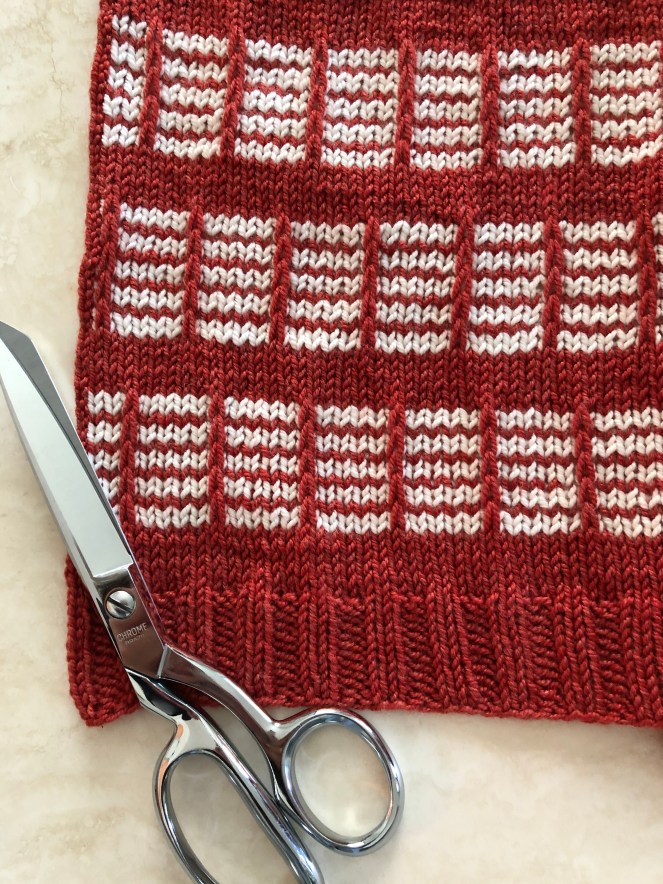 Just in time for Valentine’s Day! Although these diamonds are not of the shimmery carbon variety but a well-planned placement of textured knit and purl stitches that create the illusion of repeating geometric shapes. The designer offered three graduated sizes: baby blanket, lapghan, and full-sized afghan. My version of the Little Gem Blanket is baby-sized, 32-inches square; just right to provide a bit of warmth on a sedentary evening of streaming videos.
